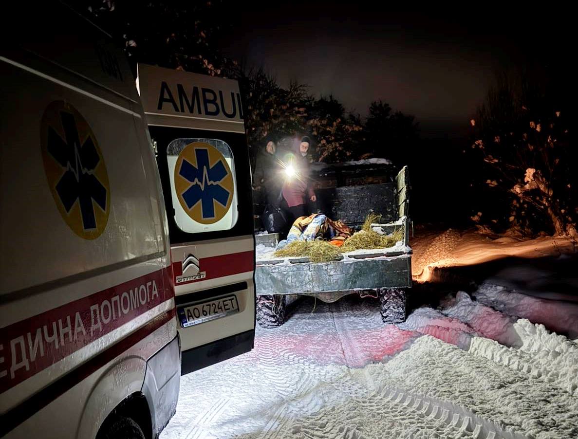 У ніч на 14 січня 2026 року в селі Сухий Ставненської сільської ради на Закарпатті бригада швидкої допомоги №1301 провела рятувальну операцію в хуртовині, щоб евакуювати 79-річного чоловіка з опіками рук та передньої частини тулуба. Пацієнт, який самостійно майже не пересувався, потребував негайної допомоги, але снігова заметіль заблокувала дорогу для карети швидкої.