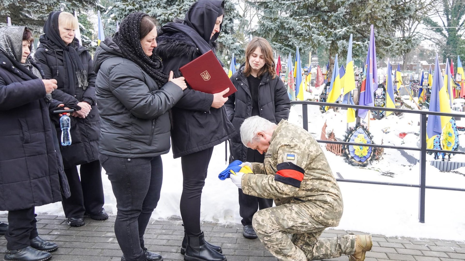 Після церемонії жалобна хода вирушила до Пагорба Слави, де Володимира Малєва поховали з військовими почестями.