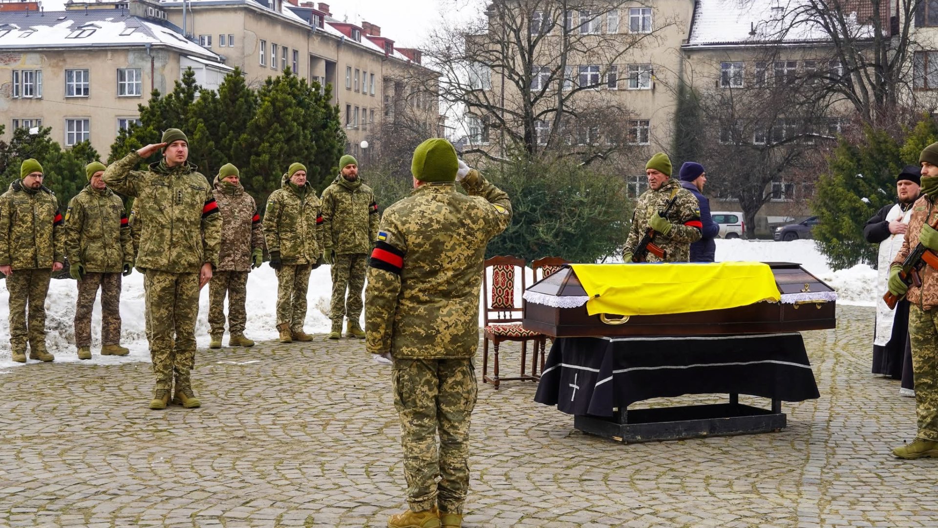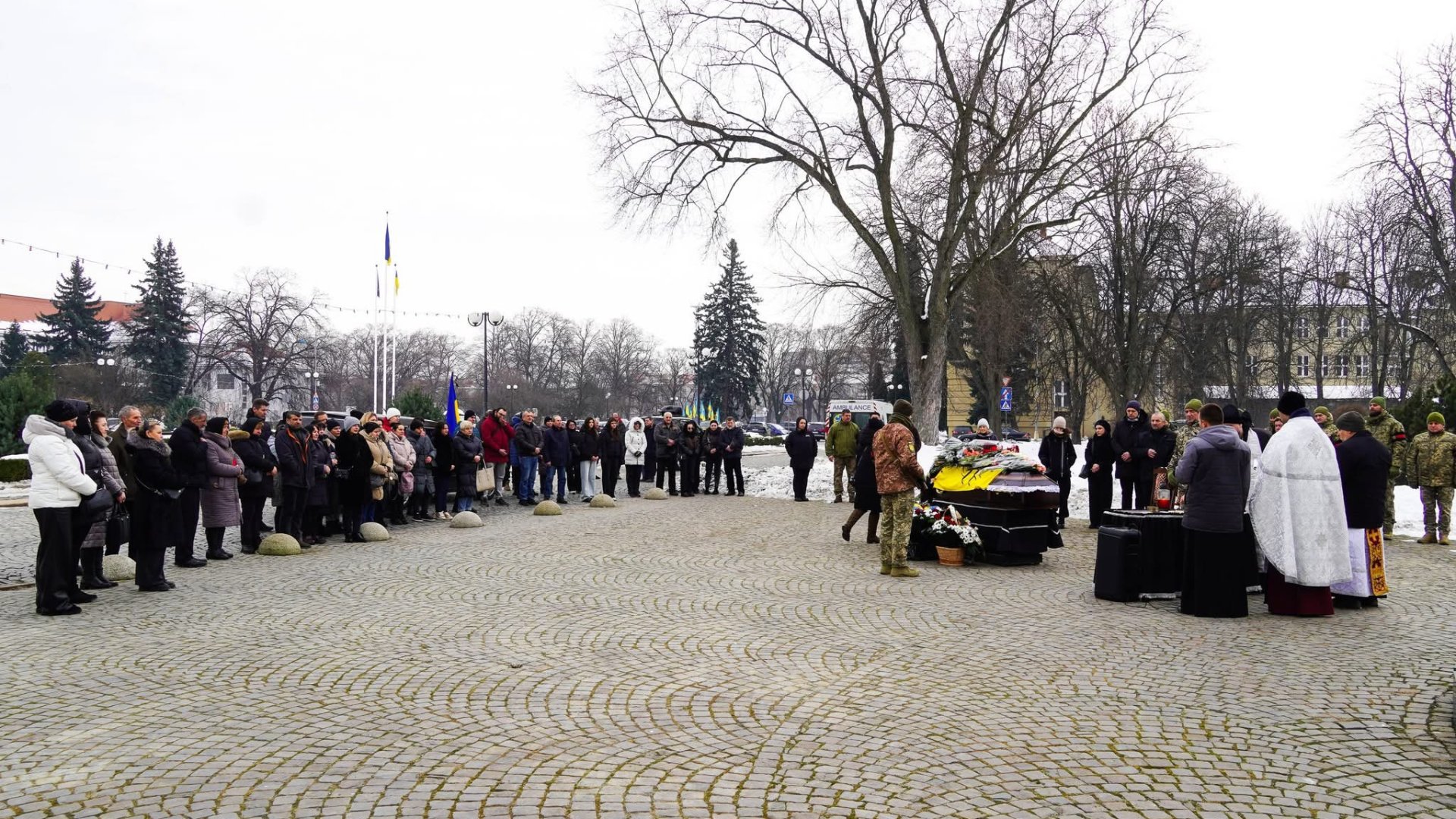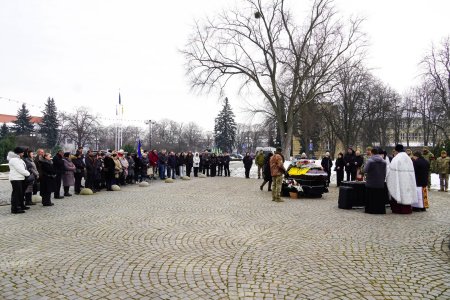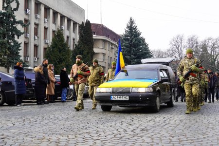 Чин похорону відбувся на площі Народній. Віддати шану полеглому прийшли рідні, друзі, військові, ужгородці, в.о. міського голови, керуючий справами виконкому Ужгородської міської ради Василь Пинзеник.