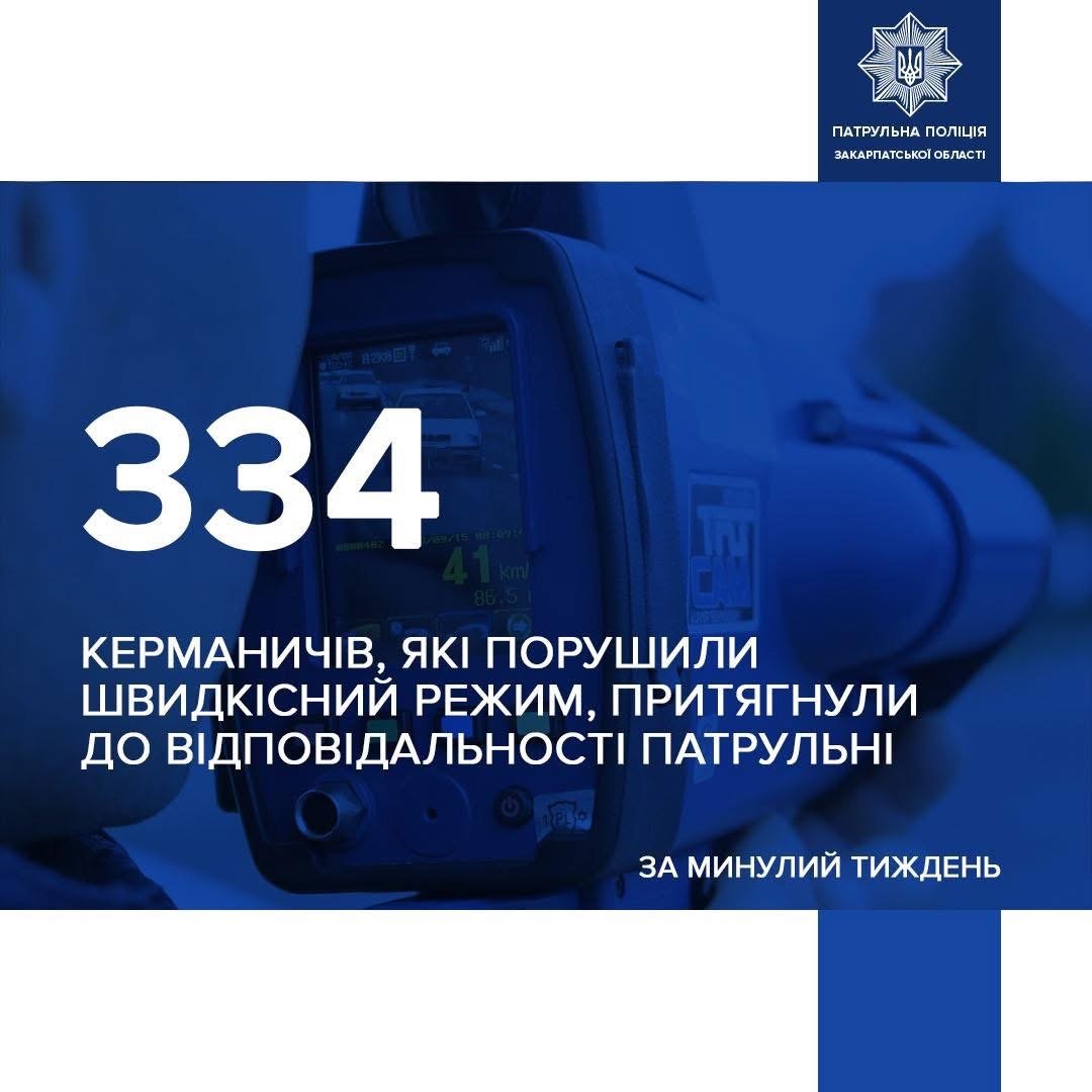 За минулий тиждень патрульні поліцейські Закарпаття винесли 334 постанови за перевищення дозволеної швидкості руху. Правоохоронці наголошують: йдеться не лише про статистику порушень, а насамперед про безпеку на дорогах.