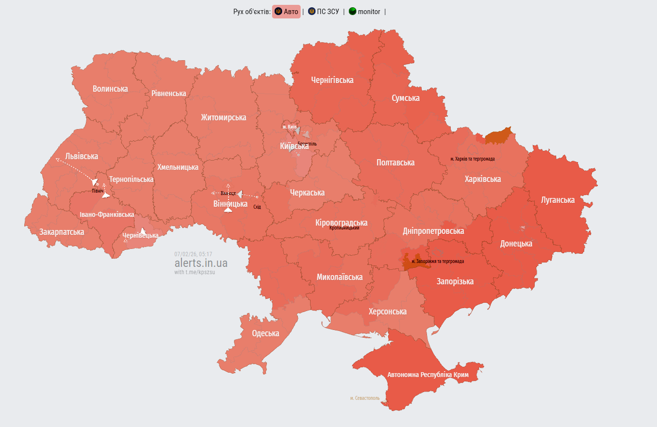 Згідно з даними волонтерських радарів та офіційних сповіщень, загроза розвивалася наступним чином: