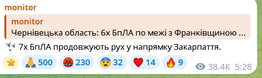 Шахеди Закарпаття: ворожі дрони змінили курс через південну частину Буковини (оновлено)