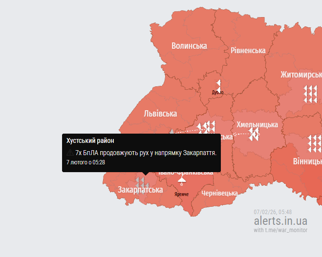 Шахеди Закарпаття - область стала ймовірню ціллю нової нічної атаки, коли моніторингові канали зафіксували рух щонайменше 3-4 безпілотників у напрямку найзахіднішої області України. За попередніми даними, дрони-камікадзе пройшли вздовж кордону на півдні Буковини, використовуючи особливості рельєфу для обходу систем ППО.
