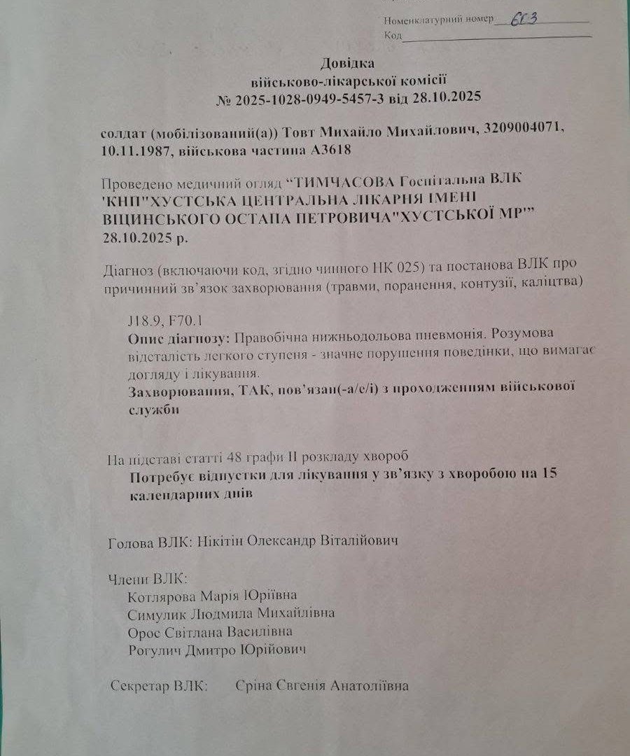На Закарпатті знову спалахнув резонансний скандал довкола діяльності територіального центру комплектування. У соціальних мережах родичі чоловіка оприлюднили, за їхніми словами, шокуючі подробиці мобілізації людини з тяжкими психічними порушеннями та просять громадськість допомогти повернути його додому.