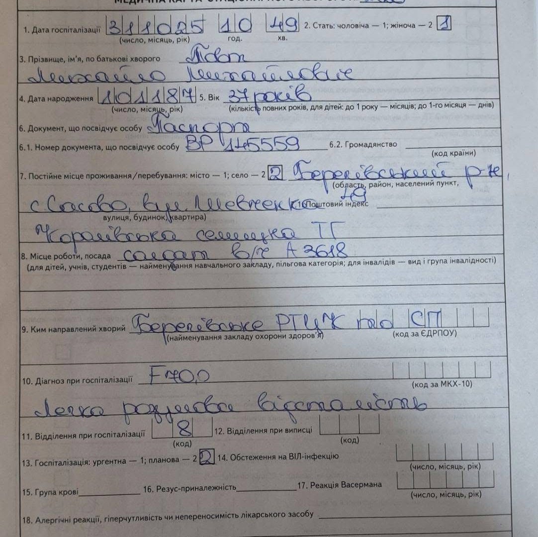 Телефону Михайло не має, номерів не пам’ятає. Знайти його вдалося лише завдяки волонтерам — чоловік перебував у лікарні Мукачева. Родина забрала його додому, після чого він проходив лікування у Берегівській обласній психіатричній лікарні, де перебував близько трьох тижнів.