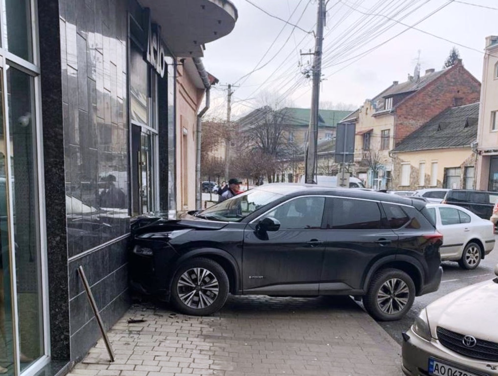 Тротуар не врятував: в Ужгороді на Капушанській Nissan Rogue «влетів» у магазин (ФОТО)