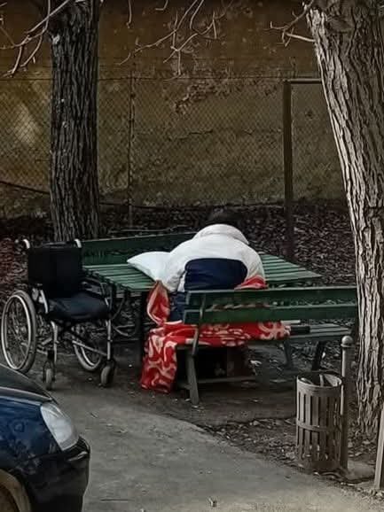 Ситуація критична: на вулиці тримається морозна температура, яку посилює крижаний дощ. За словами очевидців, чоловік не зловживає алкоголем, проте з невідомих причин залишився без даху над головою та вимушений спати на лавці.