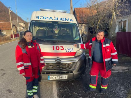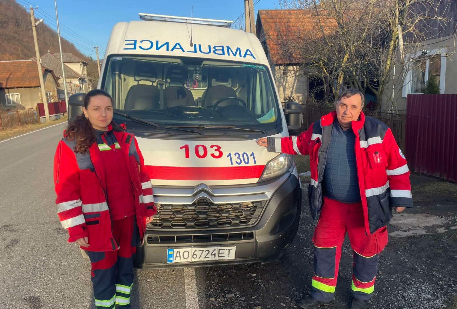Бригада №1301: парамедик Іванна Вазильняк та технік Микола Бобрик стабілізували стан дитини в дорозі.