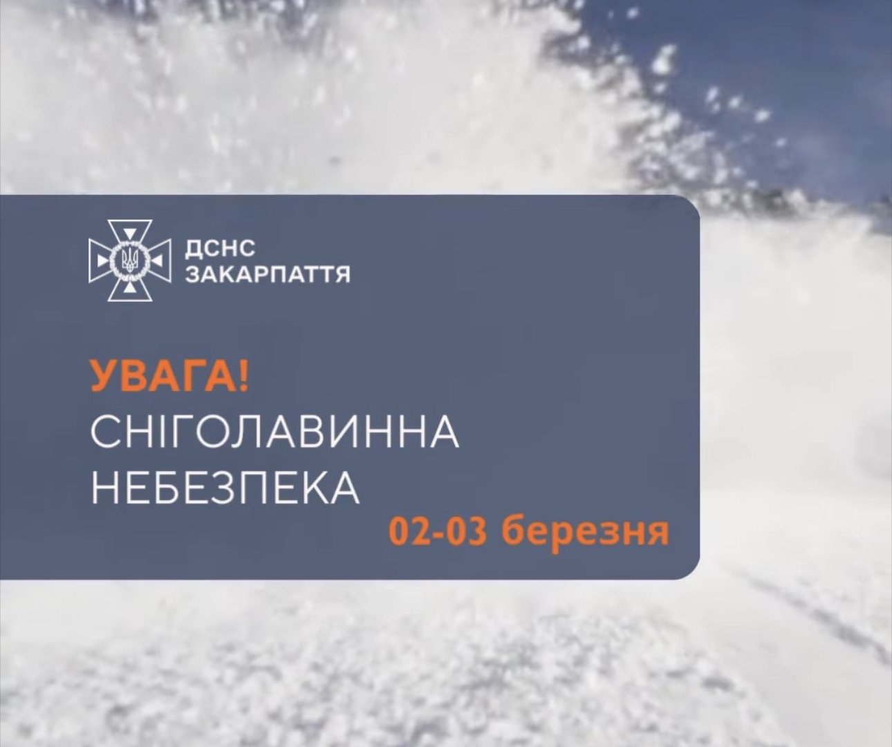 Рятувальники Закарпатської області попереджають туристів та відпочивальників про помірну сніголавинну небезпеку (2 рівень) у високогір’ї регіону 2–3 березня 2026 року.