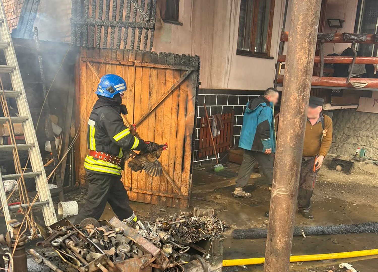 Порятунок тварин: з палаючої прибудови на свіже повітря винесли свиню та вісім курей.
