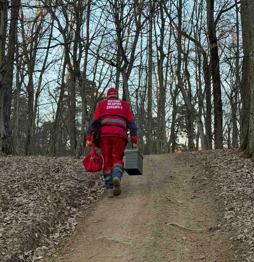 Виклик надійшов о 17:21: підліток-велосипедист втратив свідомість після жорсткого зіткнення з деревом. Завдяки смартфону вдалося отримати точні координати, але спецтранспорт зміг доїхати лише до узлісся. Далі — тільки пішки.