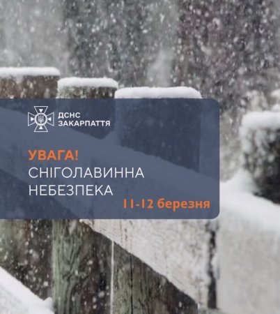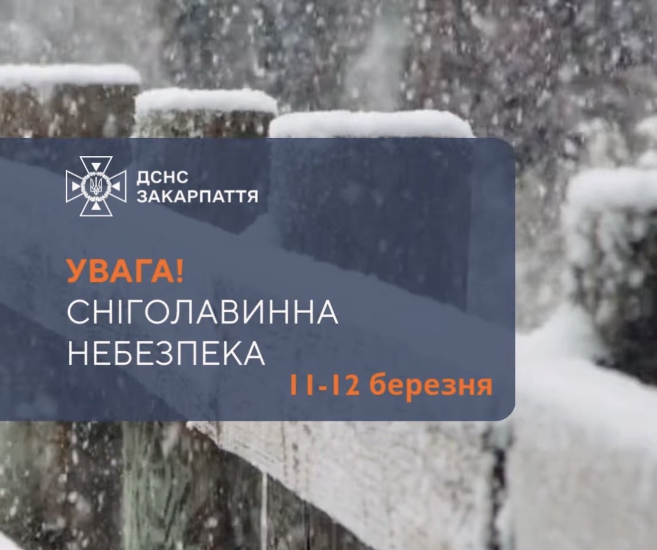 Закарпатські рятувальники попереджають туристів та жителів області про підвищену сніголавинну небезпеку у високогір’ї Карпат, яка очікується 11–12 березня.