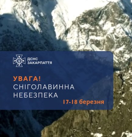 Любителів гірських подорожей попереджають про потенційну небезпеку: 17–18 березня у високогір’ї Закарпатської області очікується підвищений ризик сходження снігових лавин. Закарпатські рятувальники закликають туристів бути максимально обережними та відповідально планувати свої маршрути.