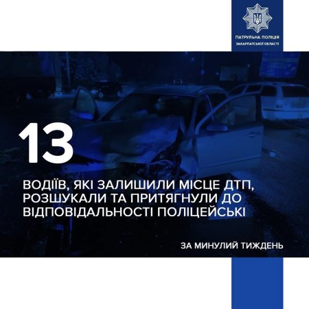 На Закарпатті водії дедалі частіше намагаються уникнути відповідальності після аварій, однак поліція швидко їх знаходить. Лише за останній тиждень правоохоронці розшукали 13 водіїв, які втекли з місця ДТП.