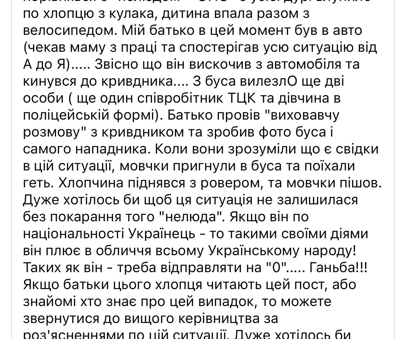- у момент, коли повз проїжджав хлопець на велосипеді (орієнтовно 18–20 років), його нібито вдарили