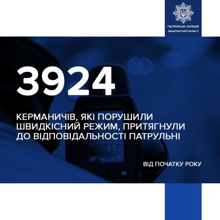 На Закарпатті з початку року патрульні поліцейські притягнули до відповідальності 3924 водіїв за перевищення швидкості.