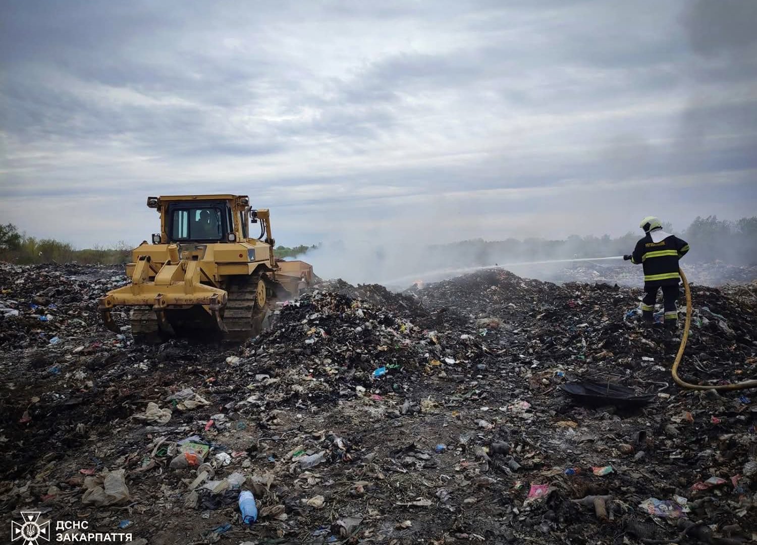 Майже 24 години знадобилося вогнеборцям, щоб приборкати масштабне займання на сміттєзвалищі у місті Чоп. Через глибоке тління сміття боротьба з вогнем була вкрай складною, а густий їдкий дим дошкуляв місцевим жителям протягом усієї доби.