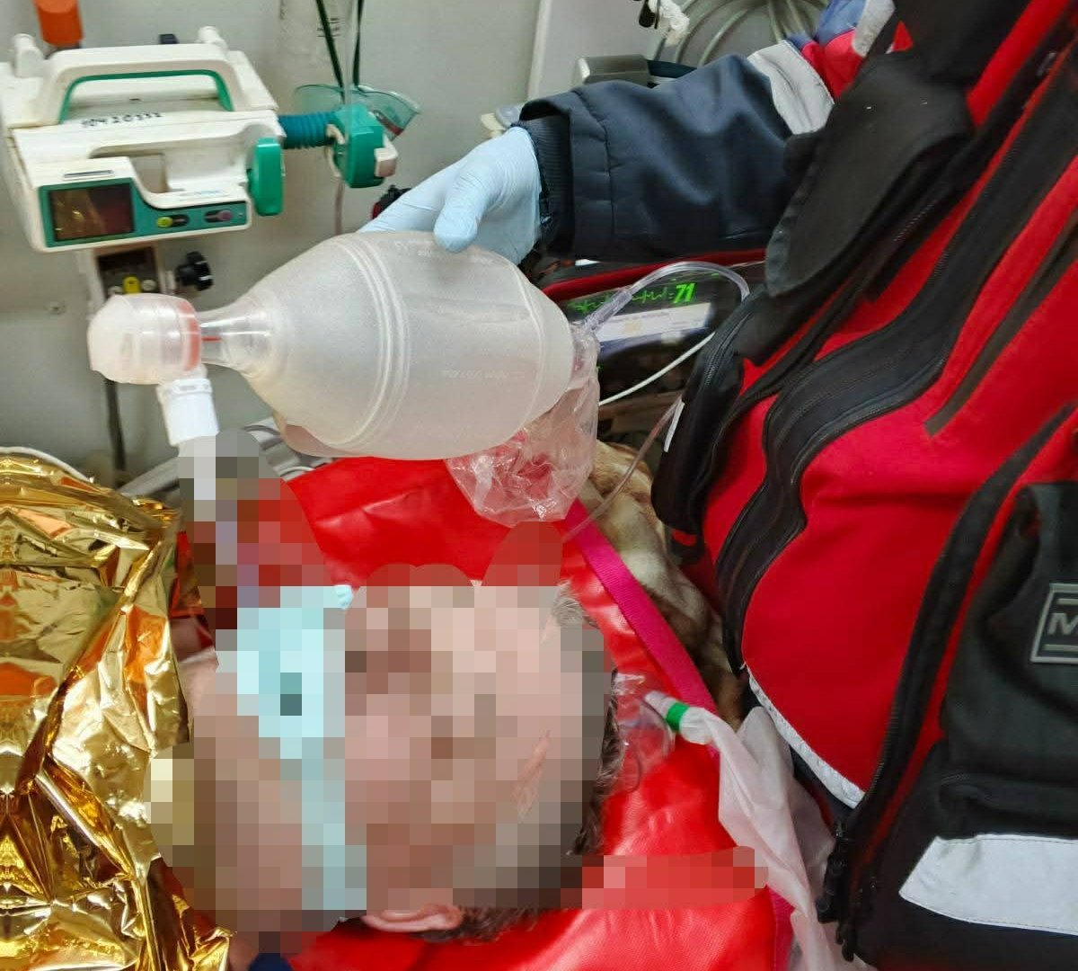 Щоб врятувати людину, лікар Іванна Петрюк, парамедик Юрій Реднік та ЕМТ Василь Дердюк прийняли рішення про негайну інтубацію трахеї прямо на місці. Пацієнта під’єднали до апарату штучної вентиляції легень (ШВЛ), взявши під повний контроль його дихальні функції.