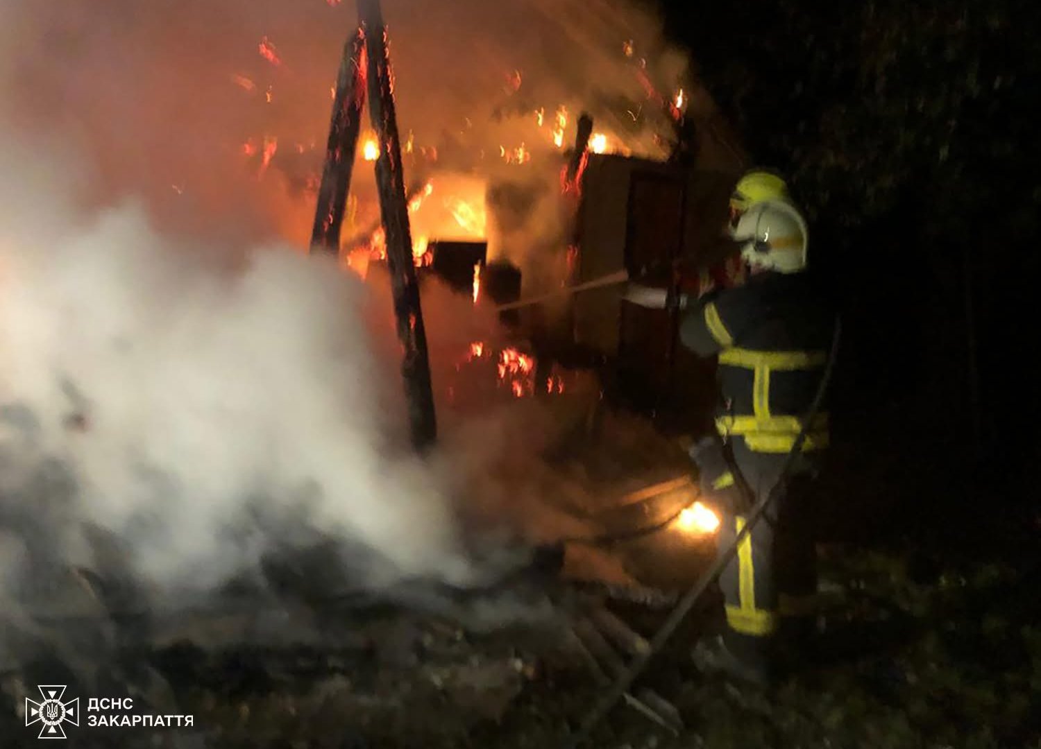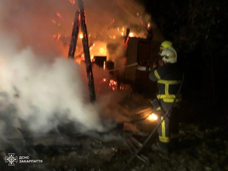 Пожежа опівночі: у Хустському районі вогонь знищив споруду, але рятувальники врятували сусідні будівлі