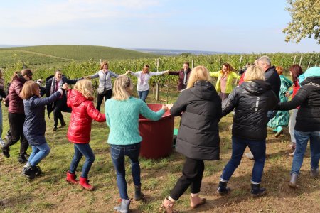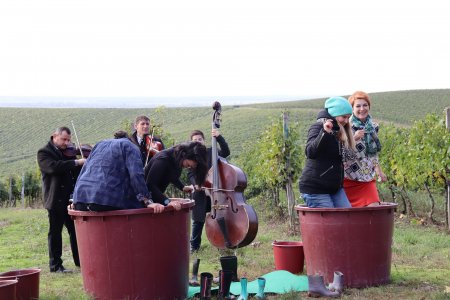 Тут гості оглянули виноградники та взяли участь у змаганнях - учасники змагалися на швидкість збору винограду сорту «Піно нуар», потім зібраний урожай чавили у великих діжках, як у фільмі Адріано Челентано «Приборкання норовливої». За традицією, щоб виноградні кущі добре перезимували, їх підлили вичавленим соком. Усе відбувалося під живе виконання народних музиків.