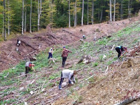 Але, може воно і до кращого. Бо робота важка: спочатку треба добратися до лісосіки, а потім садити дерева на таких ухилах, що треба триматися за землю, щоб не скотитися до низу.
