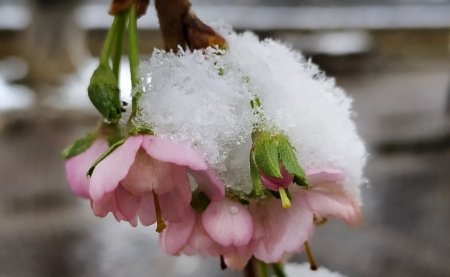 Природа дивує: У Мукачеві одночасно падає сніг і цвіте сакура