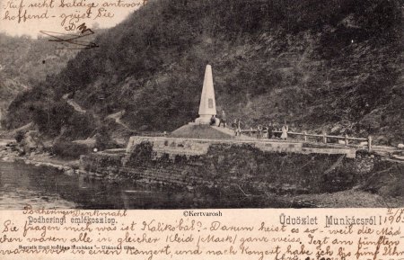 "Встановлений 19 травня 1901 р. за проєктом мукачівського інженера Густава Берновіча (угор. Bernovits Gustáv) на честь Підгорянської битви, що відбулася 22 квітня 1849 р. під час Угорської революції 1848-1849 рр. Висота пам'ятника - 8 м., вага - 28 тонн.