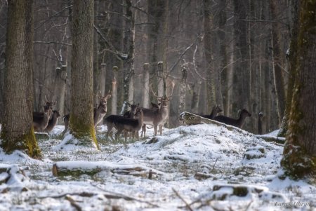 «На фотосафарі в селі Горбок Мукачівського району я їхала, знаючи, що серед стада, що нараховує понад 100 голів, є 1 лань, яка відрізняється від усіх. Вона альбіноска, тобто має білу шерсть. У природі альбіноси, як правило, не виживають, але тут в стаді вона почувається просто чудово! Щоправда, впіймати у кадр одну-єдину особину зі 100 зовсім непросто. Тут найголовніше — удача і наполегливість. Олені лякливі і біжать всім стадом в одному напрямку. Фотографуватись не хочуть, але мусять. Інколи «зависають», коли їм потрібно провести складні математичні розрахунки маршруту втечі так, щоб не бути сфотографованими», — розповіла Угрин.