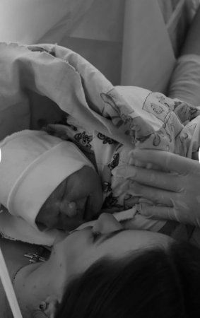 «Перший подих, перший крик. Його несуть під обігрівач, обтирають, очищують дихальні шляхи, одягають його перші шкарпеточки, першу шапочку, перший підгузок. Цієї миті мої очі наповнилися слізьми. Сакральний момент – перша зустріч із мамою. Поцілунки і сльози.. Тоді час сповільнився, я не перебільшую, емоції просто накрили, навіть не знаю, як я встигла це сфотографувати, момент був дуже хвилюючим. Магія, не інакше…».