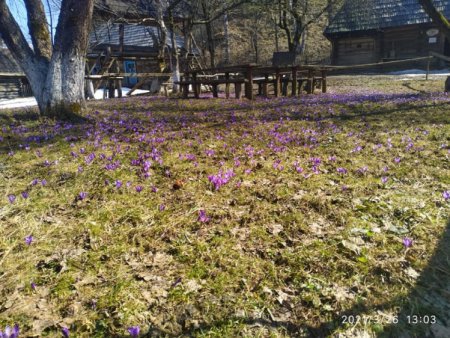 На Міжгірщині, у Колочаві почали квітнути шафрани. Про це на своїй сторінці у Facebook розповів місцевий екскурсовод Юрій Радівілов.