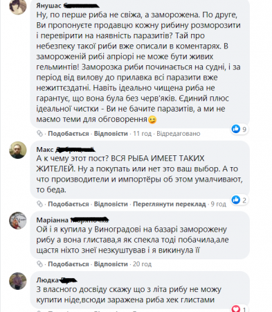 Допис жінки швидко облетів Фейсбук. У коментарях краяни зазначають, що з ними теж траплялись подібні неприємні історії. Більшість обурена тим, що покупцям продають таку рибу. Але є й ті, хто вважає, що нічого страшного у цьому нема