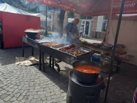 Не забули і про любителів шашлику та бограчу. За 100 грам шашлику просять 50 гривень. За ті ж гроші можна взяти і тарілку бограчу.