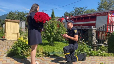 Саме таку пропозицію руки та серця влаштував для своєї коханої, вчительки інформатики Синевирської школи Антоніни Матійчин, камандир відділення державного пожежно-рятувального поста с. Колочава Іван Іваниш.