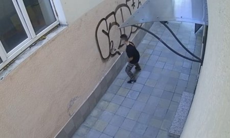 "Дане молоде дарування замість того, щоб піти займатись в зал спортом, не знайшло нічого розумнішого, як розмалювати будівлю фізкультурно-спортивного товариства "Динамо" в м.Ужгороді на вул. Швабській, 7. Враховуючи професійність рухів, думаю, що це не перший його "шедевр", і не тільки на цій стіні...