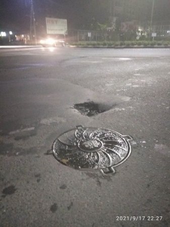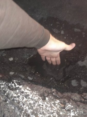 Про це повідомив у фейсбуці ужгородець Навроцкий Слава. Автор публікує фотографії і пише: "Круг Капушанської і Легоцького. Нова дорога, ще навіть 2 місяців не пройшло, як її здали, тільки тільки квіти висадили