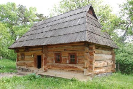 В Карпатах гуцульська хата їхала ґрунтовою дорогою.