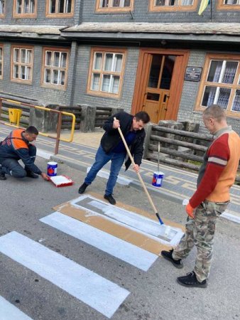 Матеріал (фарба) для нанесення розмітки була надана безоплатно одним із мешканців нашої громади.