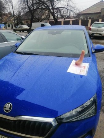 На капот автомобіля жінці прикріпили подарунок з оригінальним привітанням: «З наступаючими! Будеш мати свій, а не лізти до чужих!».