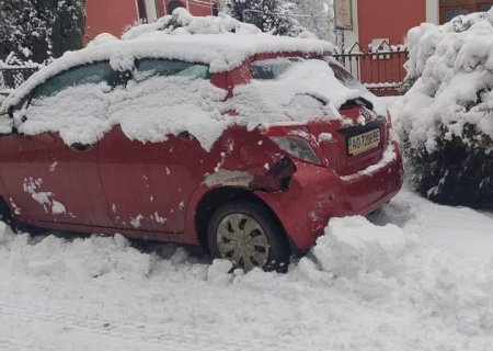 В Ужгороді водій снігоприбиральної машини наїхав на припаркований автомобіль і втік