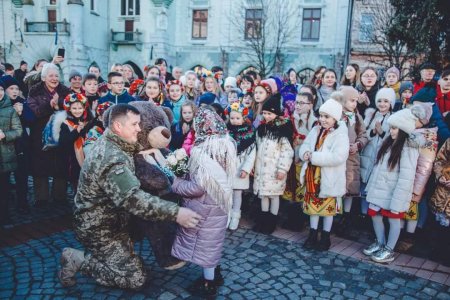 В цей час дівчинка разом з співочим колективом Мукачівського центру дитячої та юнацької творчості колядувала в центрі міста. Тато малечі, який протягом багатьох місяців захищав нашу країну на передовій у Запорізькій, Херсонській, Донецькій та інших областях вирішив влаштувати сюрприз і прийти на виступ донечки.☺️