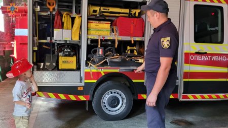 Маленький Матвій просто марив пожежною частиною і от сьогодні на нього чекав сюрприз: 4-річний хлопчик отримав можливість не тільки поспілкуватися з рятувальниками, але й обстежити весь гараж мукачівського підрозділу та на додачу побувати у диспетчерській.