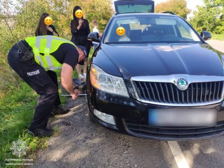 Поліцейські зупинилися, аби поцікавитися, що трапилося і чи не потрібна допомога. До патрульних одразу підійшла водійка і повідомила, що у неї пошкоджене колесо і вона не може продовжити свою поїздку.