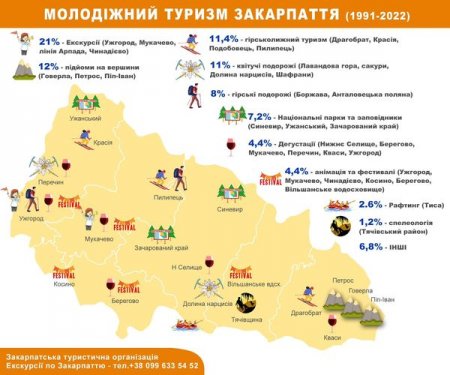 Найпопулярніші зони молодіжного туризму у Закарпатті: