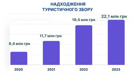 Протягом 2023 року до місцевих бюджетів Закарпатської області сплачено 22 млн 160 тис. 700 грн туристичного збору, що на 13,8% більше аналогічного періоду 2022 року.