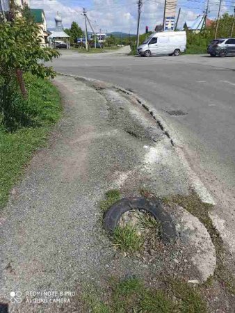 Моя 12-річна дитина днями вже вдруге впала і поламала ногу на цьому «тротуарі». Вперше це було декілька місяців тому. Обидва випадки задокументовані. Місцеві мешканці роками скаржаться на це неподобство та все марно. Неодноразово там травмувались літні люди та інші діти. Проблема посилюється тим, що цей відрізок дороги ніде не можна обійти пішки. Хіба йти по інший бік, що дуже не зручно. Та й тротуари там у подібному стані.