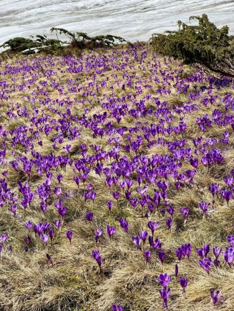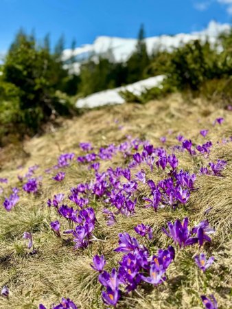 Цвітіння крокусів триває на Драгобраті. Квіти вкривають схили Свидовецького хребта на висоті понад 1300 метрів над рівнем моря.
