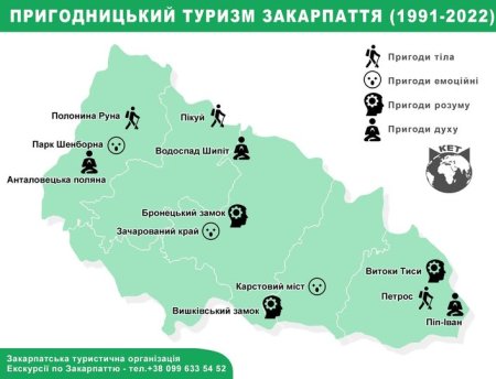 Закарпатська Туристична Організація інформує про найпопулярніші місця пригодницького туризму на Закарпатті у 1991-2023 роках