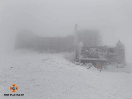 Станом на 08:00 20.11.2024 на горі Піп Іван Чорногірський хмарно, туман. Видимість обмежена. Вітер південно-західний 25 м/с., з поривами до 30-ти м/с.. Температура повітря -3°С.