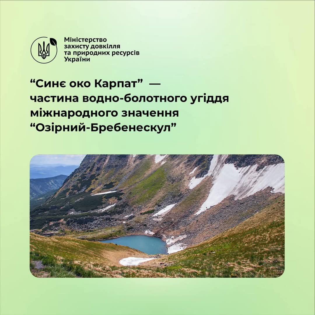 ⛰️Мало кому це відомо, проте озеро Бребенескул – частина водно-болотного угіддя міжнародного значення “Озірний-Бребенескул”. Площа водозбірного басейну – 1656,91 га. Обіймає схили гір Говерла, Брецкул, Туркул, Пожижевська, Бребенескул. У межах угіддя знаходяться 4 найбільші озера льодовикового походження: Верхнє і Нижнє Озірні, Брецкул і, власне, карове озеро Бребенєскул.