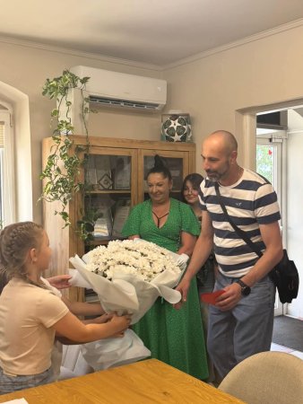 Його щиро й тепло зустріли в.о. Оноківського сільського голови Євген Лейба, перший заступник Ярослав Гринчук, а також діти громади. Малеча вручила Олександрові виготовлені власноруч сердечка з побажаннями, словами підтримки й подяки — маленькі символи великої любові та шани.